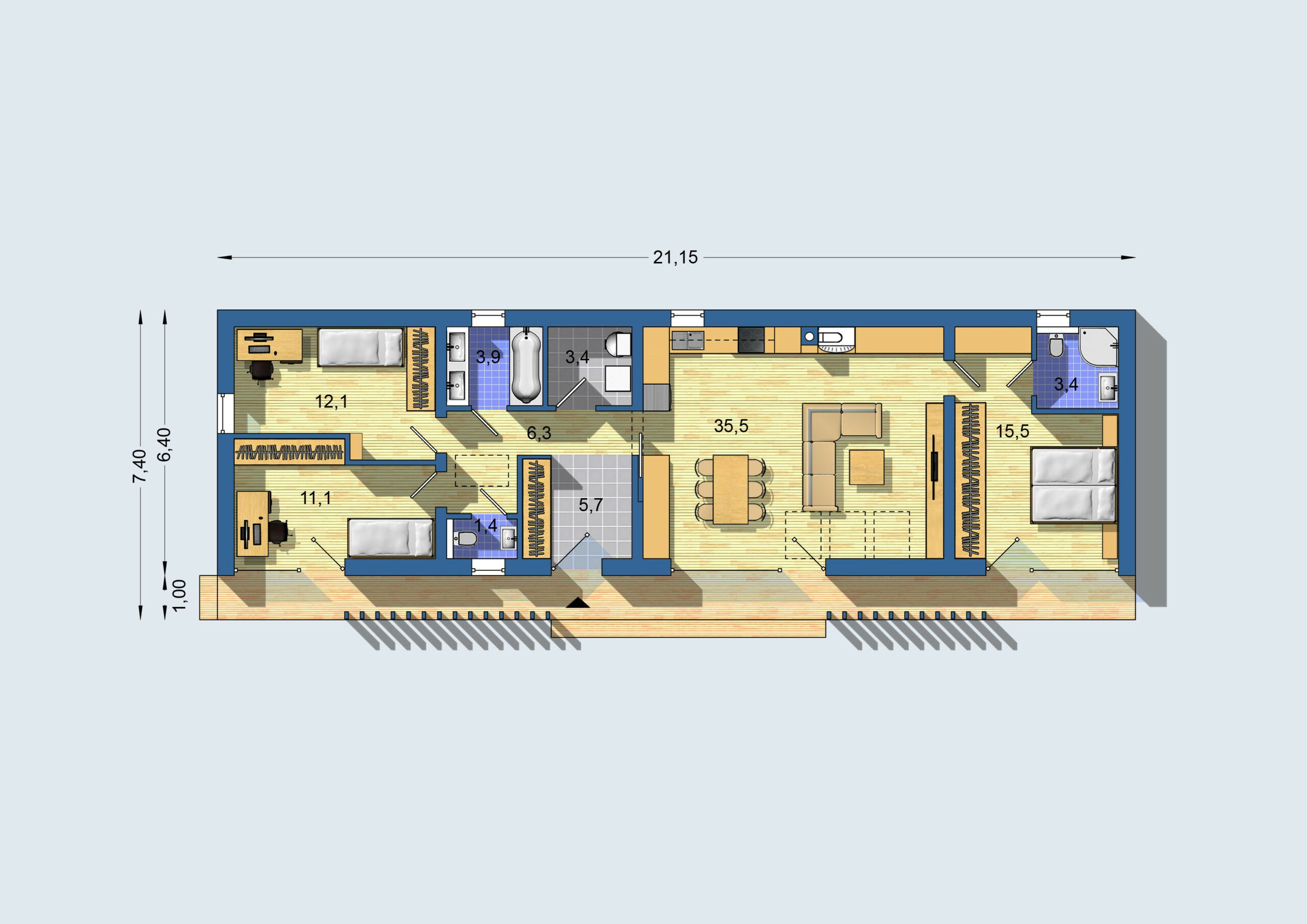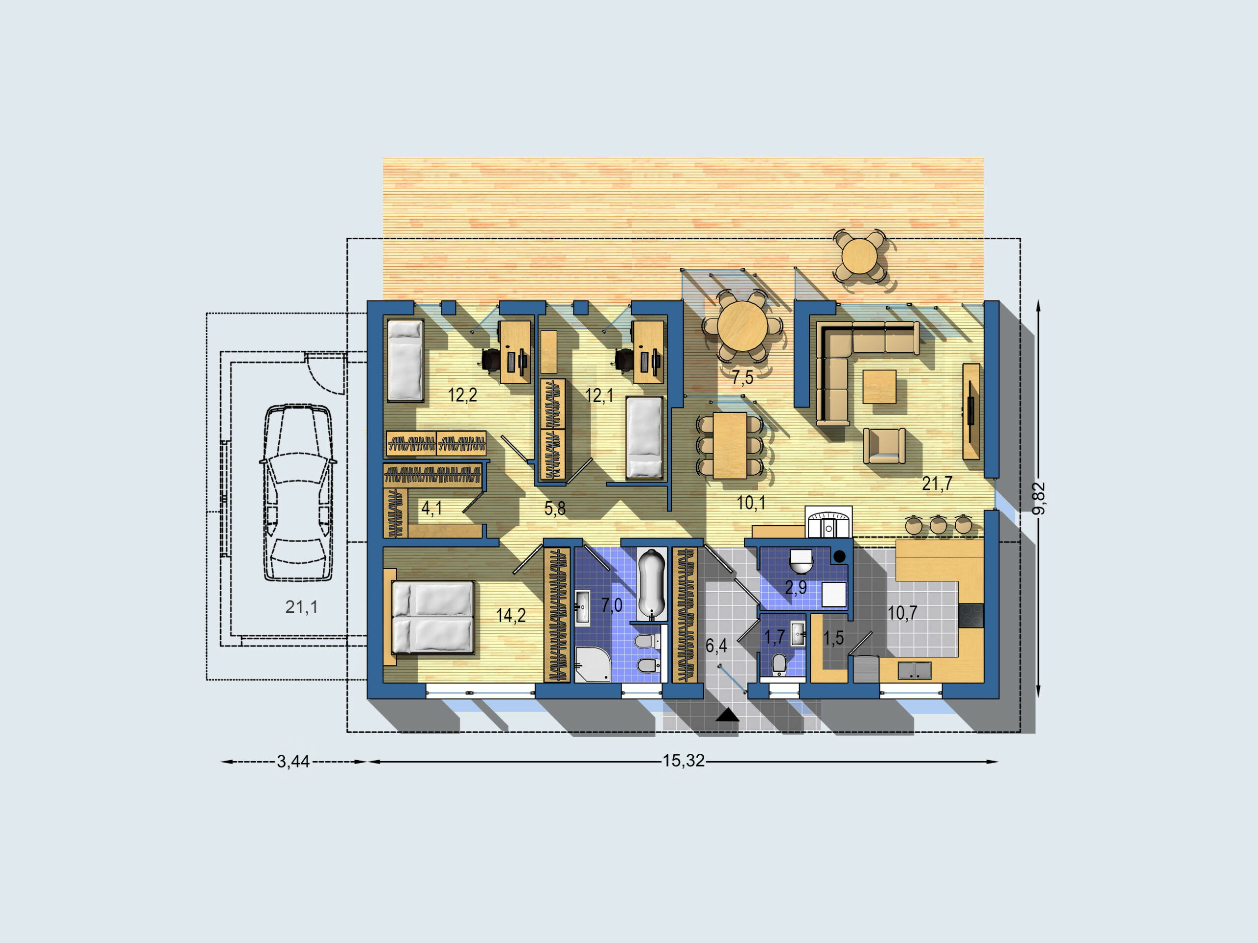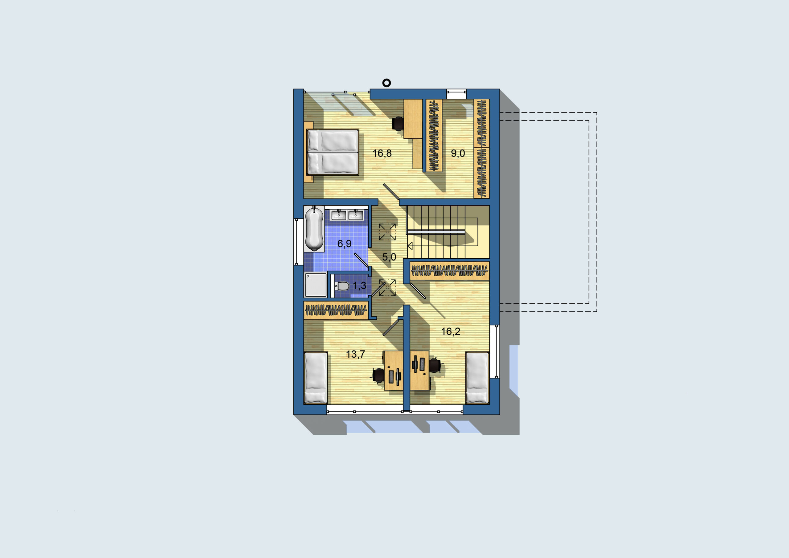 Tento dům je navržen s důrazem na ekonomickou efektivitu. Moderní a praktický dům navržený pro úsporu nákladů. Ideální volba pro rodiny hledající cenově dostupné bydlení s vysokou kvalitou a komfortem.